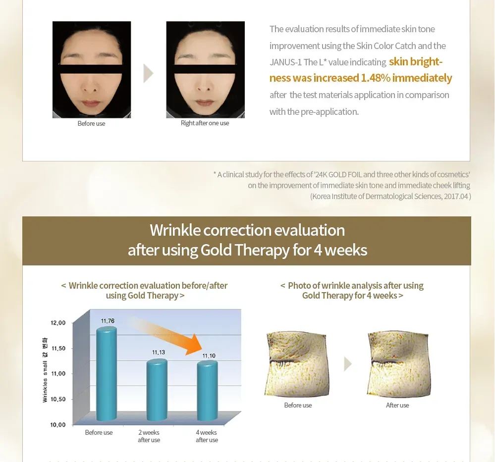 Gold Therapy makes the skin look healthy and fresh, protecting from the harmful environment