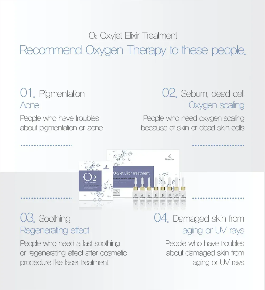 - Detoxification & Pore Care: Oxygen is supplied instantly to skin using carbonic acid. Cleanses pores and minimize them.
